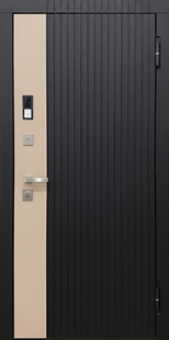Стальная дверь с черными панелями МДФ с контрастной вставкой — это надёжная защита и эстетика в одном решении. Панели из МДФ выполняются с точной фрезеровкой, подчёркивающей геометрию и стиль модели. Подчёркивают архитектурный стиль здания. Дизайн-проект подойдет для оформления парадного входа.
