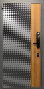 Стальная квартирная дверь с серыми панелями МДФ RAL + ПВХ и биометрическим замком КД-1408