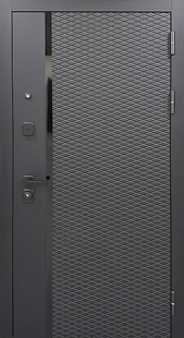 Входная квартирная дверь с панелями МДФ графит и вертикальной черной полоской — выбор тех, кто предпочитает минимализм и сдержанную эстетику. Панели из МДФ обеспечивают прочность и устойчивость к перепадам температуры. Поддерживают визуальную симметрию пространства. Оформление подойдет для домов с классическим и современным оформлением.